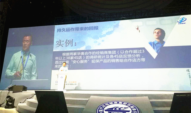隨后,許總細(xì)致闡述了華奧立足創(chuàng)新的汽車延保“安心服務(wù)”——8年/18萬(wàn)公里免費(fèi)維修服務(wù)模式是如何破解經(jīng)銷商困局,提高基盤客戶忠誠(chéng)度以及提升經(jīng)銷商盈利空間的。他以2家華奧汽車正在合作的經(jīng)銷商集團(tuán)延保業(yè)務(wù)開(kāi)展經(jīng)驗(yàn)為例,現(xiàn)場(chǎng)對(duì)華奧延保業(yè)務(wù)所帶來(lái)的利潤(rùn)數(shù)據(jù)進(jìn)行了測(cè)算,充分展示了華奧延保業(yè)務(wù)在為經(jīng)銷商創(chuàng)造利潤(rùn)和產(chǎn)值方面所做的貢獻(xiàn),同時(shí)解決了經(jīng)銷商客戶留存問(wèn)題。